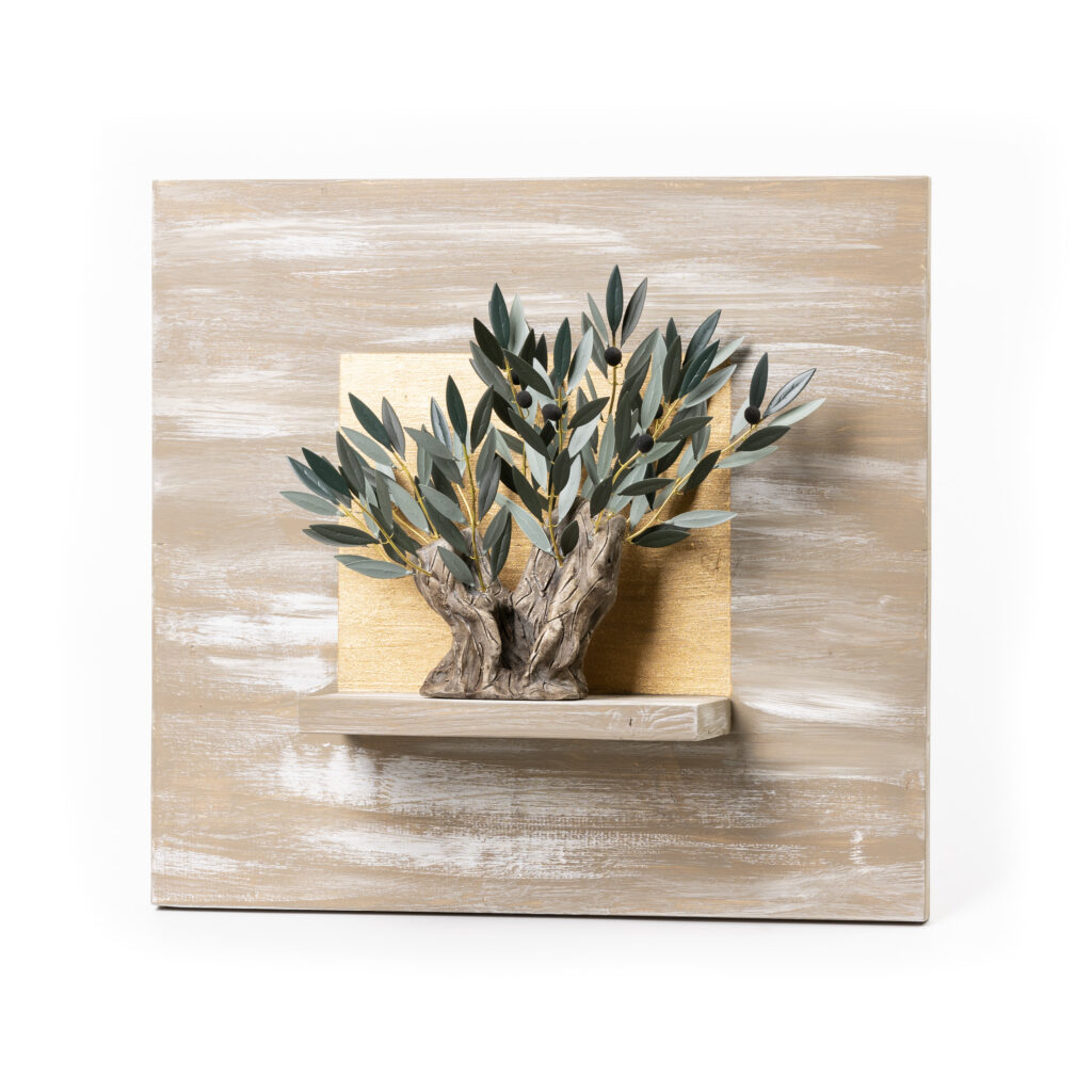 ελιάς από φύλλα ορείχαλκου με κεραμικές ελιές. Στο συγκεκριμένο προϊόν τα φύλλα